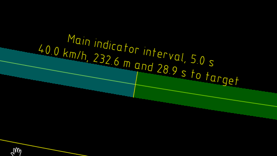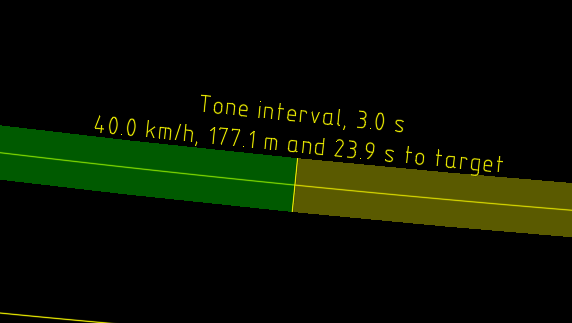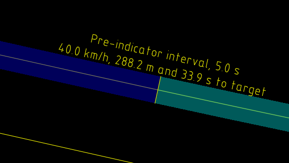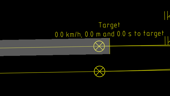ATC braking curve calculations are made from track data and wayside speed boards. The calculation is performed by setting the target position and train brake parameters (see figure). The speed profile of the braking train is indicated in the drawing.